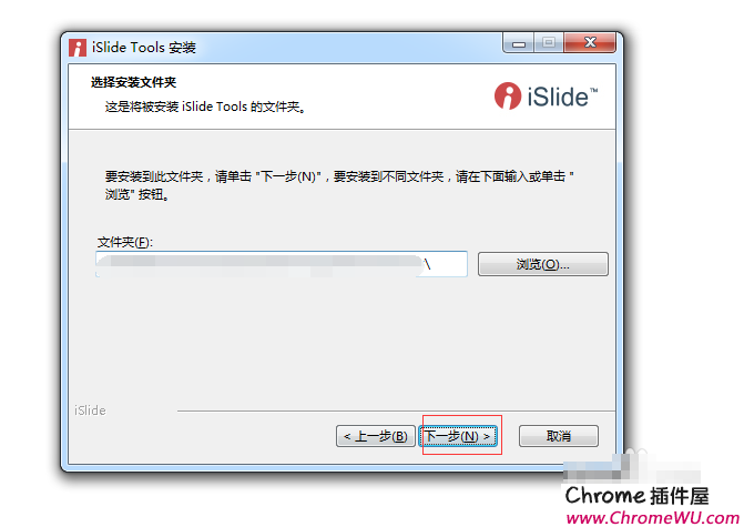 6、然后选择安装路径,点击下一步,进入下一安装界面,然后点击安装。就进入了islide的安装。