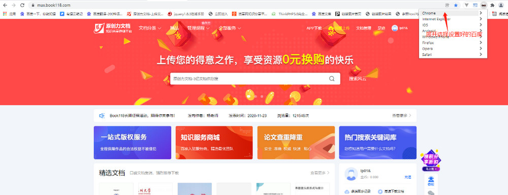 9. 打开网址,点击蜘蛛插件图标,选择Chrome组别里面的百度,就可以查看蜘蛛页: